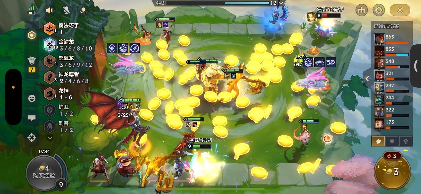开局(1-3阶段)优先抢装备:主要抢反曲弓(羊刀)、大剑(德莱文之斧)和锁子甲(肉装),这些装备对金鳞龙阵容的成型和稳定至关重要。过渡阵容:采用3金鳞龙(凯隐+沃利贝尔+亚托克斯)搭配2格斗或2射手,这样的组合能在前期保持一定的战斗力。