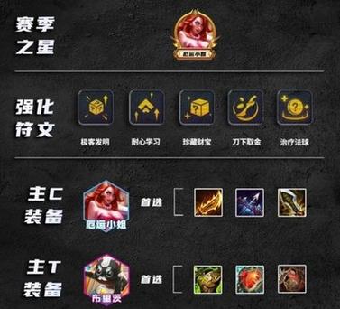 推荐使用铁甲6哨兵阵容,此阵容在当前版本中拥有较高的强度,对于新手玩家来说,它能提供相对稳定的得分。其最大的优点是装备要求不高,主C卢锡安的出装可以非常灵活,建议优先考虑法爆、巨杀和正义等装备。然而,此阵容也有明显的缺点,比如容易遇到同行,使得阵容成型变得相当困难。