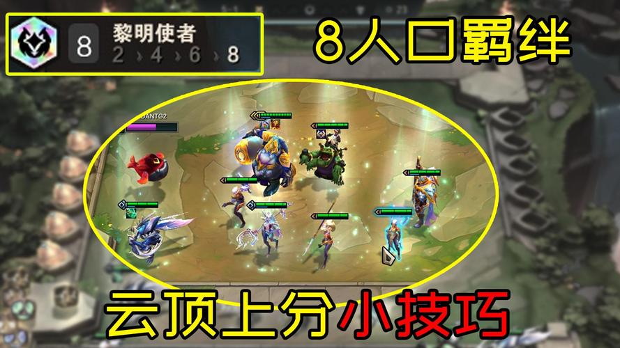 〖Four〗、0%最大生命值 『4』50%最大生命值 『6』90%最大生命值 『8』150%最大生命值 黎明使者的英雄坦度较高,不易被秒杀,并且因为豹女在S5的技能,所以阵容搭配如下。所需英雄:酒桶、螳螂、锐雯、盖伦、豹女、星妈、扇子妈、艾翁(黎明使者转职)。