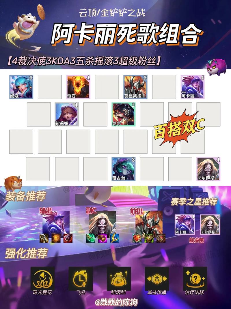 金铲铲之战s10赌厄加特阵容非常好玩,且是一套强势的上分阵容。以下是该阵容的详细解析:阵容强度与上手难度 强度:非常高。厄加特作为主C,在舞者羁绊的加成下,具有极强的生存能力和输出能力,往往能在瞬间满血反杀对手。上手难度:容易。