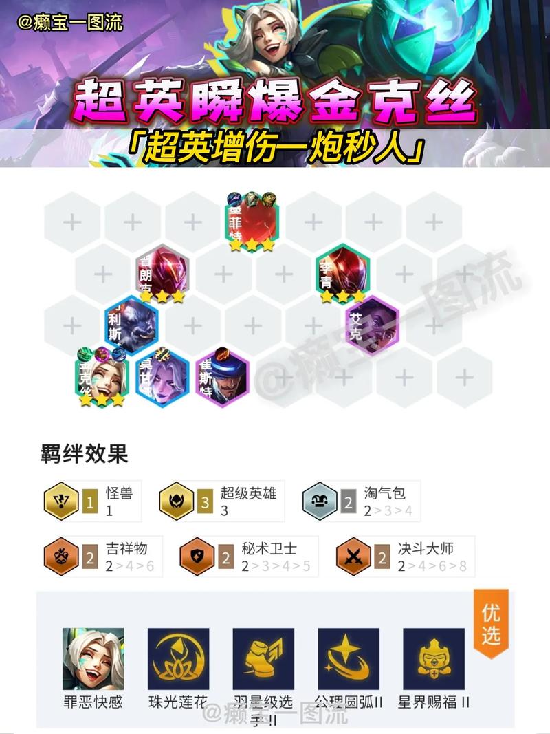 〖One〗、云顶金铲铲:烈焰普朗克阵容,近期崛起的冷门强力组合,吃分稳定性高,适合偷分。这套阵容对棋子和符文有特定要求,不宜盲目尝试。普朗克技能伤害升级,配合烈焰弹射符文,能实现两次高爆发,一次技能轻松双杀。阵容搭配超英羁绊,虽强度较前版本略有下降,但四到五枚棋子达到三星时,额外伤害可增加30%以上。