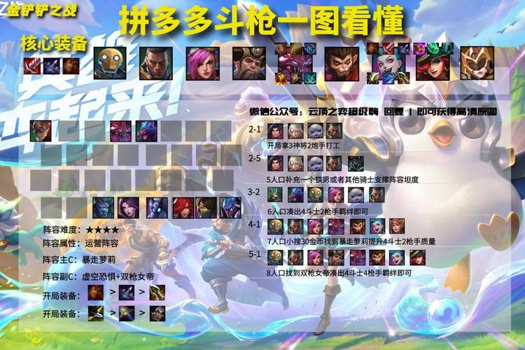 〖One〗、【金铲铲之战攻略汇总】金铲铲之战经典海克斯斗枪阵容玩法介绍前期阵容: 前期优先抢反曲弓和大剑,阵容可以先拿2斗2骑士2游侠或者4斗士过渡。 中期阵容: 先合复活甲和飓风给金克斯,前面给别的打工用,4-1上7人口,看质量小d一下,保证血量,有6斗士可以上6斗士锁血。