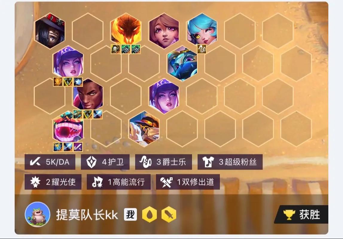 〖Three〗、阵容构成:巴德+女枪+瑟提+EZ+锤石+约里克+烬+俄洛伊;阵容羁绊:4大腕射手 2爵士 2格斗 2护卫 2舞者;装备搭配:EZ主c装备带无尽之刃、最后的轻语和蓝buff(备选巨杀、红霸符、青龙刀等)。俄洛伊带肉装前排抗伤。