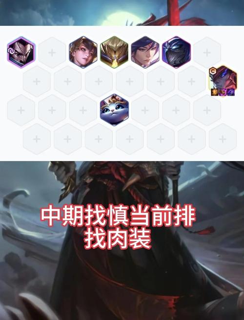 前期过渡策略: 第一种:直接奔向最终阵容,从2阶段自然刷出音浪卡特开始构建。 第二种:2阶段纯连败,优先收集莉莉娅、伊芙琳、凯南、卡特琳娜,并确保这些角色达到2星,保持利息,利用打野怪时临时抓取1费天选。