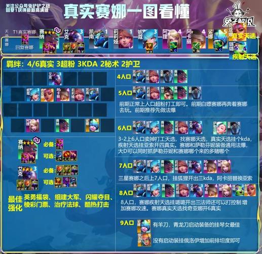 双修出道:提升阵容的整体输出能力。6真实伤害:增加真实伤害效果,对敌方造成无视护甲的打击。2疾射枪手:提升赛娜和厄斐琉斯的攻击速度。3超级粉丝:为赛娜提供额外的输出加成。2秘术护卫:增加阵容的魔法抗性。2护卫:提升阵容的物理防御能力。