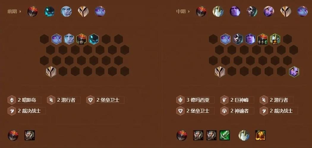 〖Three〗、金铲铲之战S5奇亚娜主C阵容玩法攻略如下:阵容构成 核心阵容:4裁决战士、4潜行者、2祖安。阵容站位 潜行者站在第一排,优先承受伤害以触发潜行效果并切入后排。 其余前排卡牌站在第第四排。 副C艾克/卡特与奇亚娜站在两侧,确保能稳定切到敌方C位。