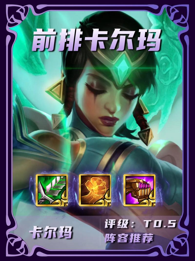 金铲铲之战s5卡尔玛的玩法主要包括技能利用、羁绊搭配以及属性理解:技能利用- 技能效果:卡尔玛的技能“鼓舞”能为距离最近的友方英雄提供护盾和攻击速度加成。如果被系住的英雄阵亡,则会随机选取另一名友军提供同样的效果。
