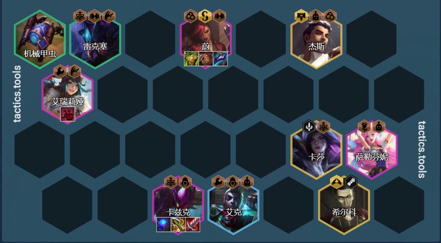 阵容分析:①组成:螳螂、派克、酒桶、奶妈、豹女、锐雯、卡尔玛、狗熊。如果盖伦加入,可以替换豹女或锐雯。若达到9人口,可增加艾翁,阵容趋于完整。若拥有黎明转职,则可组成8黎明,如有斗士转职,则可组成4斗士。②出装:主c螳螂:正义之手、无尽和复活甲,亦可选取双正义之手搭配复活甲。