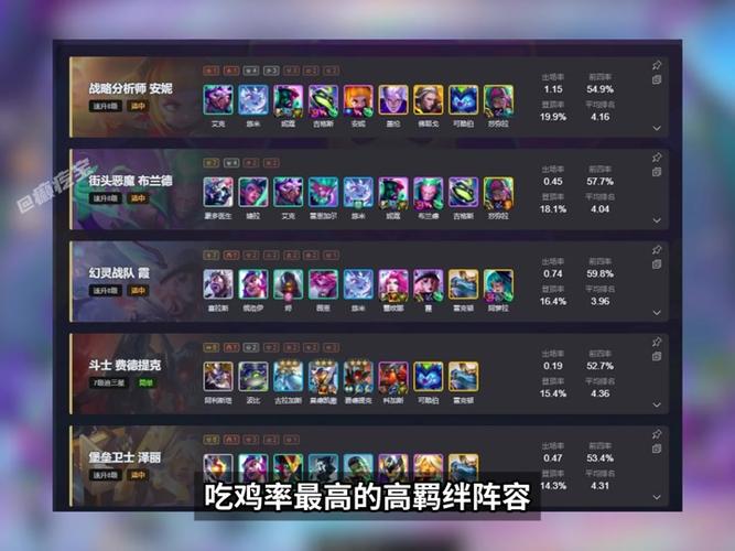 前排英雄:洛、剑姬、莫甘娜、卡特。 中排英雄:莉莉娅、萨勒芬妮、巴德。 后排英雄:丁真、滑板鞋。羁绊搭配 - 6花仙:以洛、莉莉娅、萨勒芬妮为主,强化群体伤害和控制。- 2狂暴战士:增加剑姬和卡特的攻击力,提升输出能力。- 3复苏:部分英雄拥有复活效果,增强持续作战能力。