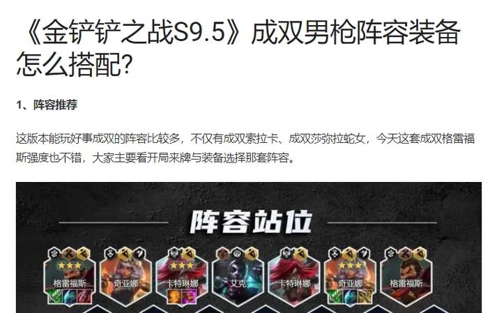 金铲铲之战S9.5成双男枪阵容怎么玩-金铲铲之战S9.5成双男枪阵容攻略_百...