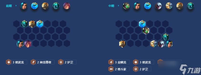 〖Four〗、尽快上八,找齐霞、杰斯、龙女阵容就基本成型,新版的怒翼龙是2/4/6羁绊,所以搜出龙女换下呲呲就可以直接开6怒翼龙。新赛季的洛自带缴械、嘲讽、护盾、回血四项功能性效果多少有点变态,在8级把阵容整体搜到2星后就可以考虑上九。