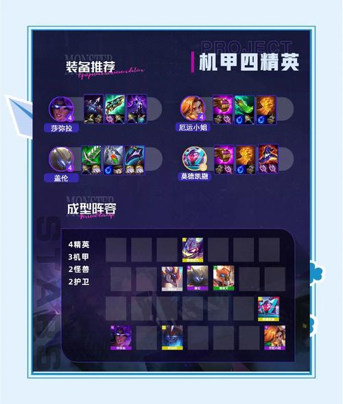 极客九五阵容 核心思路:利用极客羁绊快速获取装备和金币,通过经济优势快速升级人口,最终组成九五至尊的豪华阵容。关键英雄:维克托、金克丝、杰斯等五费卡,以及前期过渡用的极客英雄如艾克、吉格斯等。装备推荐:优先合成无尽之刃、巨人捕手之矛等攻击装,以及蓝霸符等回蓝装。