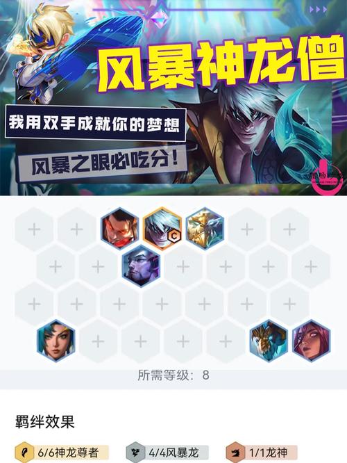 〖One〗、阶段:21拉4人口,25拉5人口,优先构建4神龙2风暴龙羁绊。 3阶段:32拉6人口,尽量开出6神龙2风暴龙羁绊。 4回合:3541拉7人口,找到格雷福斯和赫卡里姆,补充阵容坦度和伤害,找到2星李青。根据血量决定是先追3星李青还是拉8人口。 后期阵容:8人口开出6风暴4神龙羁绊,优先追3星李青。