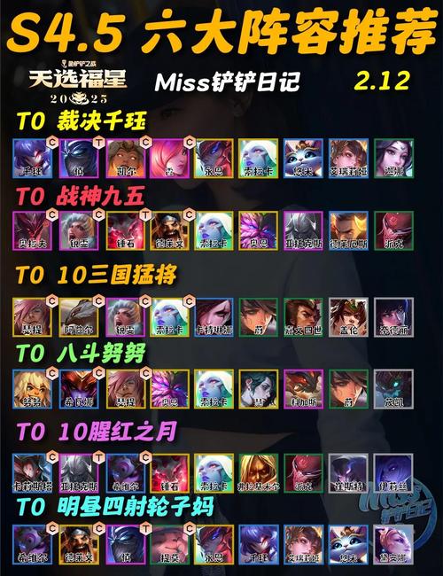 皎月、劫、提莫、悠米、派克、千珏、剑魔、时光、奥恩。天选推荐:战神劫最佳。阵容站位:刺客英雄(如劫)尽量沉底站位,以便更好地切入敌方后排。剑魔放在倒数第二排,以便在战斗开始时能够吸引敌方火力。