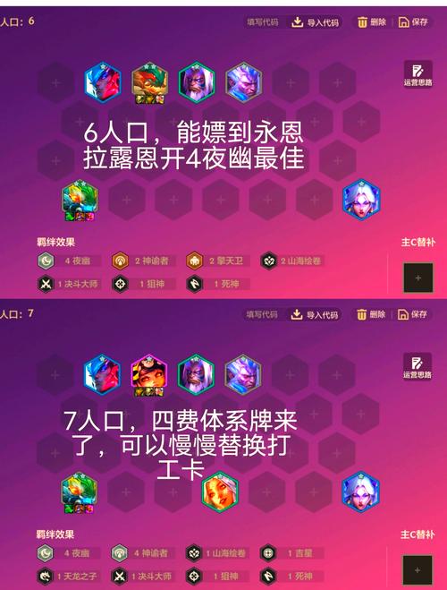玩法高风险高回报,一旦成型,极具竞争力。站位建议:根据实际对战情况灵活调整,确保关键英雄如卡特等处于安全位置。夜幽瑞文阵容玩法:角色选取:瑞文、莉莉娅、蛇女、锤石、薇恩、烬、时光、剑魔。此阵容需凑齐夜幽羁绊,或利用转职装备达到6夜幽。