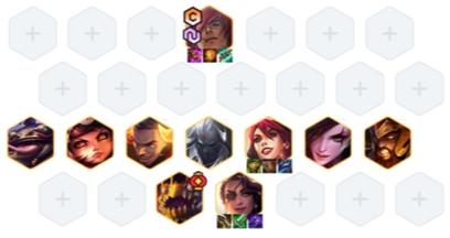 阵容组成:永恩、刀妹、武器、盲僧、肾、猫、霞、千珏、天使。阵容强度:成型必吃分,质量够高能吃鸡。核心装备:羊刀、火炮、旗子(千珏/霞)运营思路:①弓开局的话尽量走连胜,装备不需要抢的情况下。②开局可以三国豹女带装备,也可以看天选走。