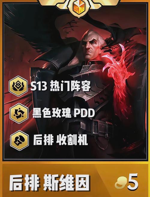 在金铲铲之战中,拼多多希维尔的阵容搭配如下: 羁绊组成:轮子妈(猩红天选)为核心,搭配4重装、3秘术、3猩红、3山海、2斗士和2神射手。根据对局情况,羁绊组成可以灵活调整。