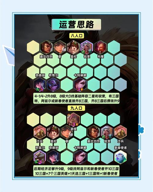 首先,你需要在你的阵容中选取特定的七位英雄:奈德丽、盖伦、嘉文四世、蔚、赵信、卡特琳娜和阿兹尔。这个羁绊可以升级至9级,这就需要通过合成装备来实现。最基本的三国羁绊阵容需要这七个英雄在场,随后通过特定的装备提升羁绊效果。