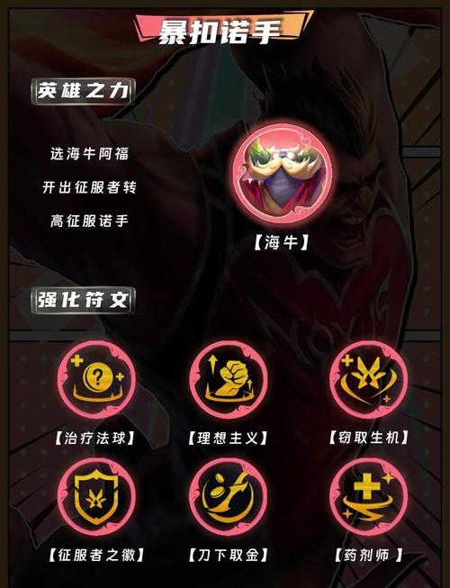 〖One〗、阵容推荐 暴扣诺手阵容由皮皮赛恩、猪妹、雪男、诺手、烬、谜烬六名英雄组成,构成4征服者、3诺克萨斯、2弗雷尔卓德、2主宰、2格斗家的羁绊组合。这样的搭配能够充分发挥诺手的输出能力,同时保证阵容的坦度和控制。