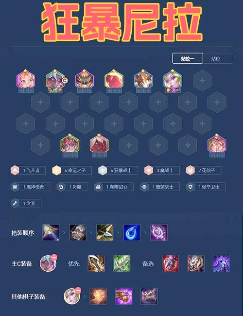 〖Two〗、阵容构成 核心成员:盖伦、蕾欧娜、猴子、烬、薇古丝、派克等。 羁绊组合:3战斗机甲、3至高天、3混沌战士、2秘术卫士、2护卫、2吉祥物、2怪兽、1堕落使者。核心角色与装备 主T盖伦:装备优先为饮血剑、反甲与龙牙。饮血剑能充分利用盖伦的生命值优势,获得护盾效果。