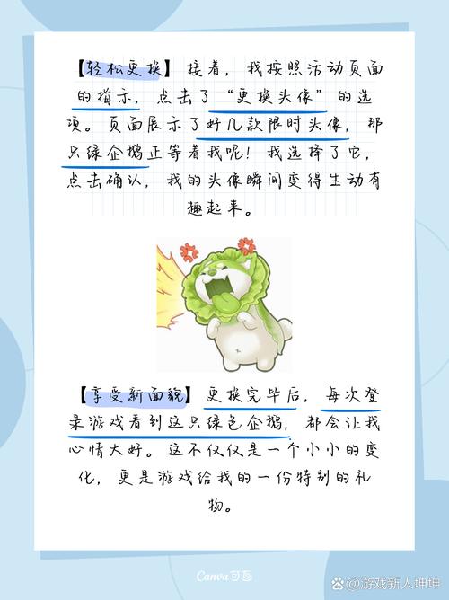 〖Four〗、若玩家的头像被改为绿色企鹅,通常是因为头像中包含违规内容。这时,玩家应访问个人信息页面中的头像展示部分,选取其他符合规定的头像进行替换。只要新选取的头像满足平台要求,即可恢复正常展示。绿色企鹅头像的出现可能意味着原来的头像存在一些不符合规则的情况。