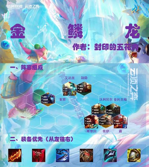 备选阵容搭配: 泰隆、艾达丝、黛安娜、派克、凯隐、佐伊、锤石:这也是一个可行的金鳞龙阵容搭配,泰隆可以作为主C输出,艾达丝则提供坦度支持,其他英雄则根据羁绊效果进行搭配。装备推荐: 泰隆:无尽之刃、饮血剑、最后的轻语/巨人杀手/德莱文之斧等输出装备。