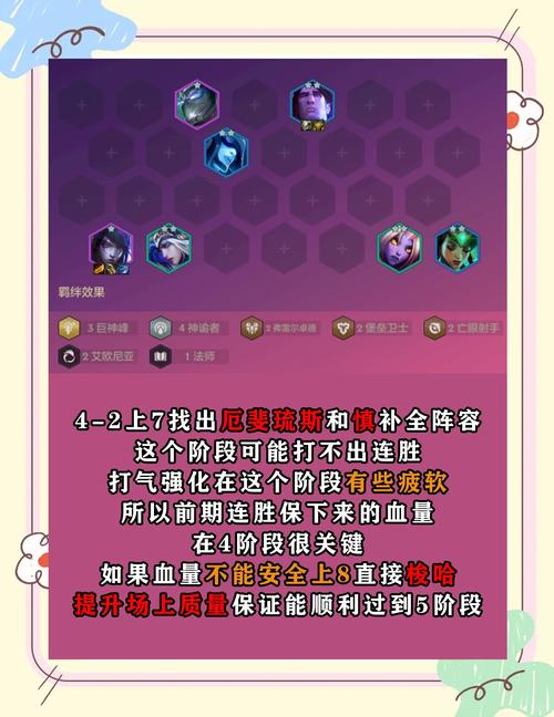 冰沙亡眼阵容:这是厄斐琉斯的一个核心阵容,主要依赖亡眼射手的羁绊来提升厄斐琉斯的输出能力。同时,你可以搭配其他合适的英雄和装备来增强阵容的整体实力。大成九五阵容:当游戏进入后期,你可以考虑转型为大成九五阵容,即包含多个五费英雄的阵容。