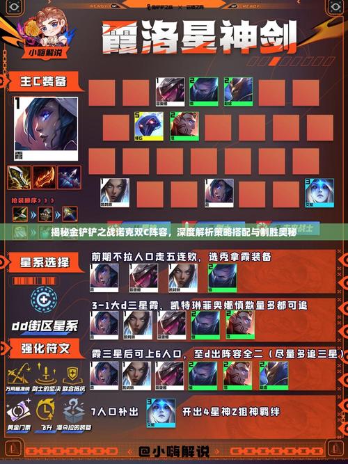 〖One〗、金铲铲之战德莱厄斯与卡特琳娜组成的诺克萨斯双C冷门上分策略如下:阵容组成 核心英雄:德莱厄斯、卡特琳娜其他英雄:厄斐琉斯、艾克、克列、卡西奥佩亚、卡拉拉,共6个诺克萨斯英雄,包括暗裔、潜行者、主宰、裁决战士各一个。英雄之力与强化符文 英雄之力推荐带崔斯特,强化服二杠一必拿卡牌专属技能。