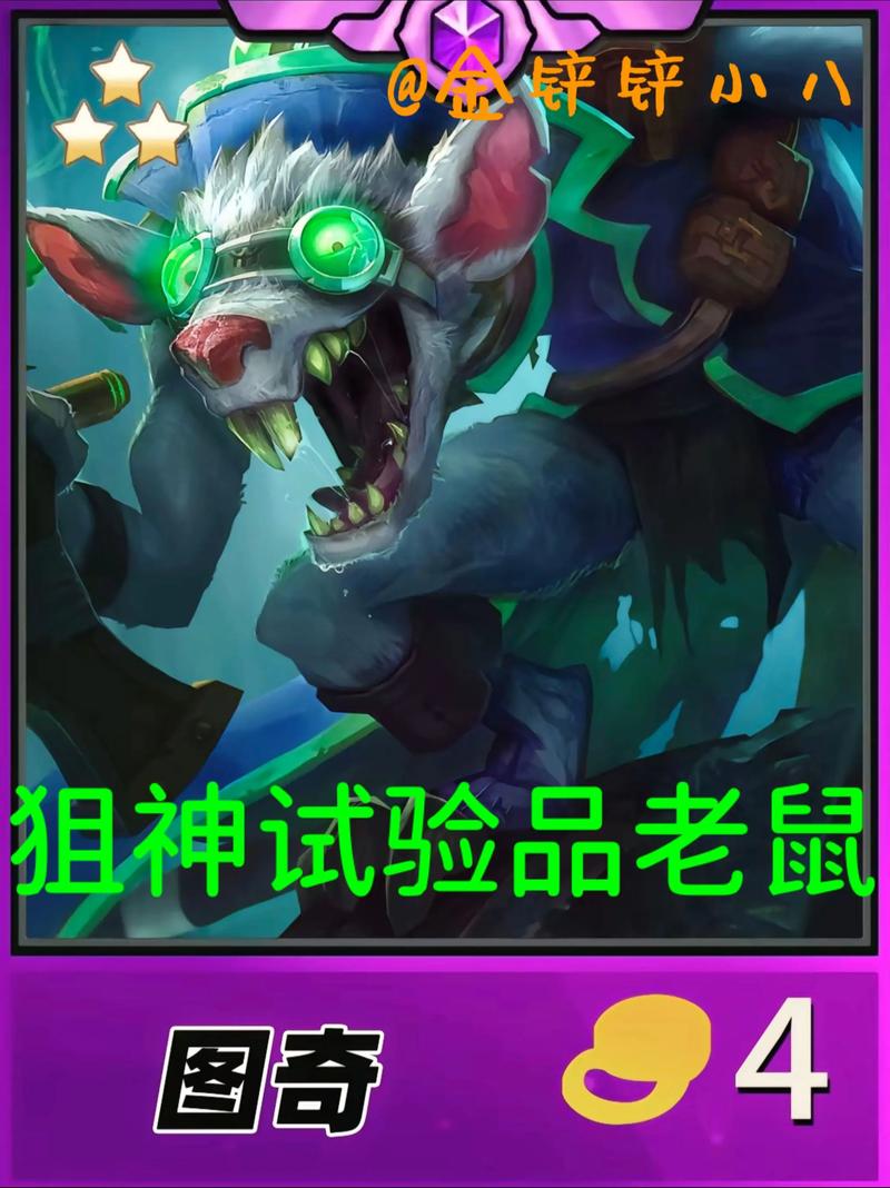 〖Three〗、金铲铲之战狙神推荐玩【保镖狙神】4狙神2保镖2白魔,具体攻略如下:棋子及羁绊如图所示:装备分析开局抢手套,攻速,大剑,优先烬的装备,其次赏金的装备,防装给布隆。烬如果没水银,也可以做个伏击给发条。