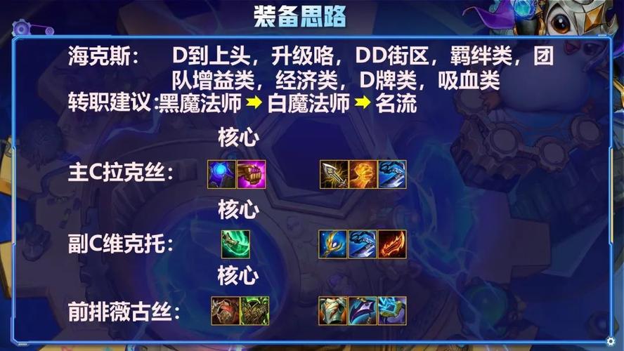 〖One〗、主C斯维因:装备优先级比较高,确保斯维因的输出能力。推荐装备包括珠光护手、大天使之杖以及巨人捕手等,以提升其法术输出和爆发能力。前排妮蔻:寻找肉装以增强其坦度,为后排输出提供保护。推荐装备包括日炎斗篷、荆棘之甲以及巨龙之爪等,以应对不同类型的敌人。