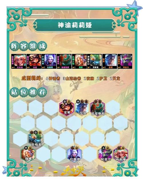 S11赛季金铲铲之战山海绘卷莉莉娅阵容搭配全解析如下:核心英雄与装备搭配 莉莉娅:作为阵容的核心,莉莉娅的技能“惊惶之花”能够造成魔法伤害并使敌人陷入睡眠状态。为了最大化其技能效果,建议搭配蓝霸符以增加技能释放频率,鬼书以提供额外的魔法伤害和重伤效果。此外,还可以考虑珠光护手等增加法术强度的装备。