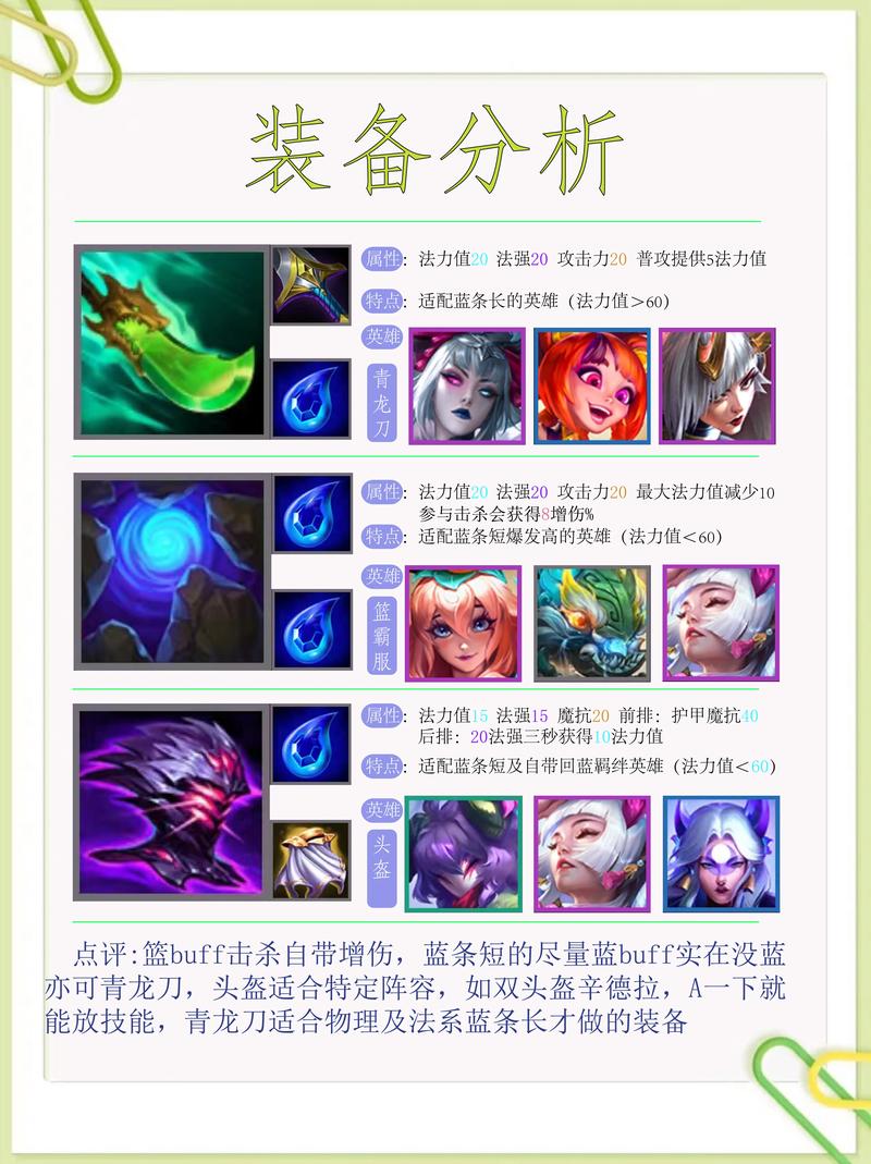 〖Three〗、前期水滴/大棒开局,羊刀/青龙刀/大天使就往重秘上面靠,鬼书/蓝BUFF/法爆就往黑白魔上面靠,这套也是整个赛季万金油的思路,希望大家能掌握并熟练运用,大多运营阵容基本都是以上述思路为基础的。