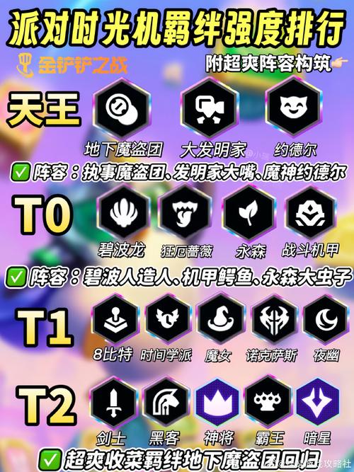 《金铲铲之战》派对时光机模式羁绊包括以下几类:经典羁绊回归:8比特:一个充满数字与像素风格的羁绊,可能带来独特的战斗效果和视觉体验。爵士乐:以音乐为主题的羁绊,可能与攻击速度、技能释放等战斗属性相关。夜幽:神秘而幽暗的羁绊,可能增强英雄的法术强度或提供额外的生存能力。
