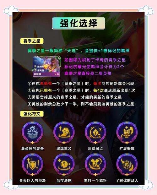首先,5黑玫九五阵容被提及为强度比较高的运营阵容之一。这套阵容以黑玫先知和蚂蚱为核心,蚂蚱作为5费卡,在8人口时若能D到1星蚂蚱并搭配足够的前排质量,便能稳定过渡到9人口。此外,阵容中的其他角色如盖伦或乌鸦等,也能在特定情况下发挥重要作用。其次,6极客阵容也备受推崇。