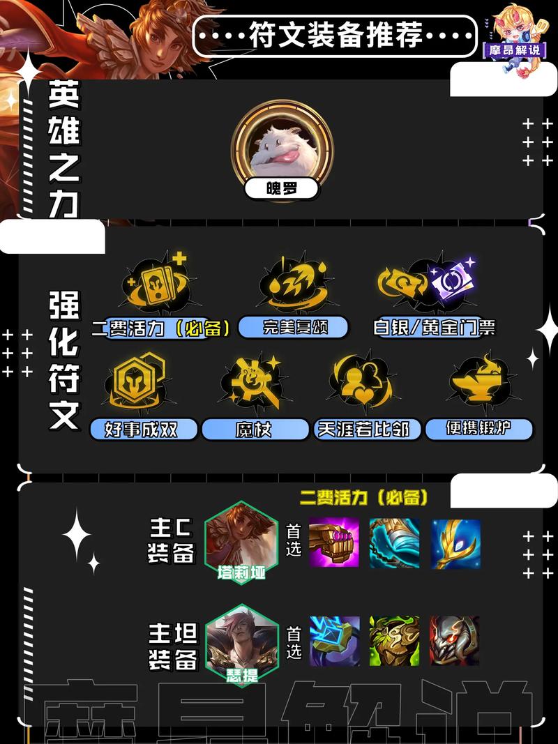 〖Two〗、综上所述,灵能使塔莉娅玩法的搭配与运营策略需要玩家在实践中不断摸索与优化。通过合理选取羁绊、强化、装备与运营策略,玩家能够最大化地发挥灵能使塔莉娅阵容的潜力,实现游戏中的胜利。期待每位玩家都能找到最适合自己的灵能使组合与策略,享受金铲铲之战带来的乐趣与挑战。