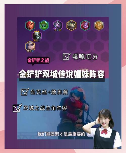 阵容组成羁绊 主要羁绊:8学院、2枪手、2姐妹。装备选取 主C蔚:理想装备:学院转职+无尽+法爆。替代装备:法爆+正义(提高续航),若海克斯有吸血,则将法爆换为巨杀。副C永恩/拉克丝:若AD散件多,则给永恩找复活甲、水银、羊刀(羊刀优先级比较高)。