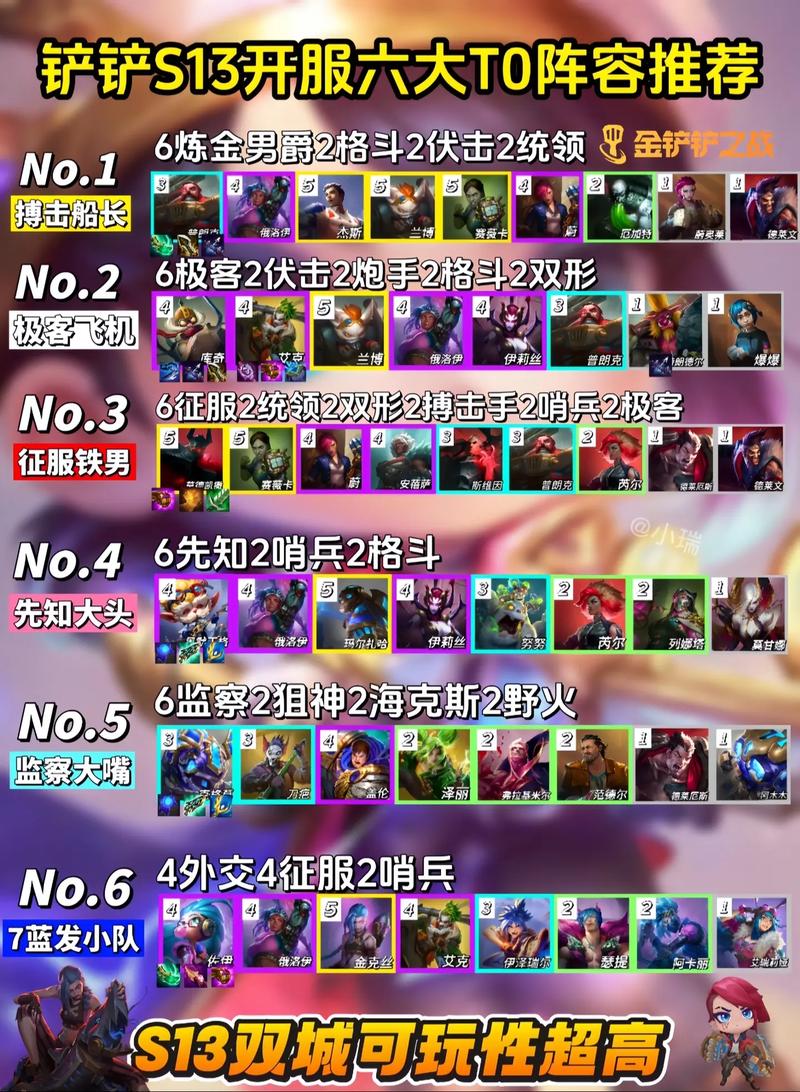 《金铲铲之战》T0阵容及搭配上分方法 T0阵容介绍 狮子狗阵容:以狮子狗为核心,搭配冰霜女巫、火男等辅助英雄,以及剑圣、火女为输出英雄,形成高爆发、高控制的阵容。猎人阵容:以猎人为主力输出,同样搭配冰霜女巫、火男等辅助,以及剑圣、火女为输出,形成强大的输出能力。