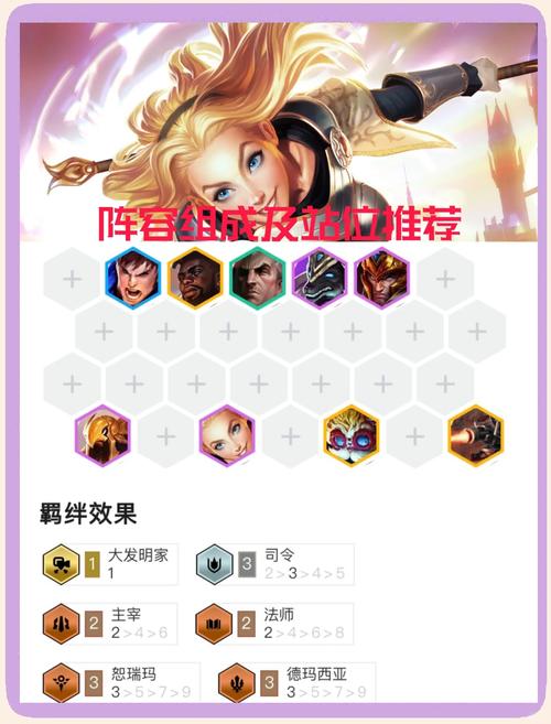 阵容搭配与核心英雄 阵容羁绊:龙魂小炮阵容主要以“龙魂”羁绊为主,搭配“神射手”和“秘术师”等辅助羁绊来提升整体战斗力。核心英雄:主要核心英雄为小炮(爆破专家)以及龙魂系列英雄,如潘森或希瓦娜等。通过激活“龙魂”羁绊,可以为队伍提供额外的生命值加成和技能强化效果。