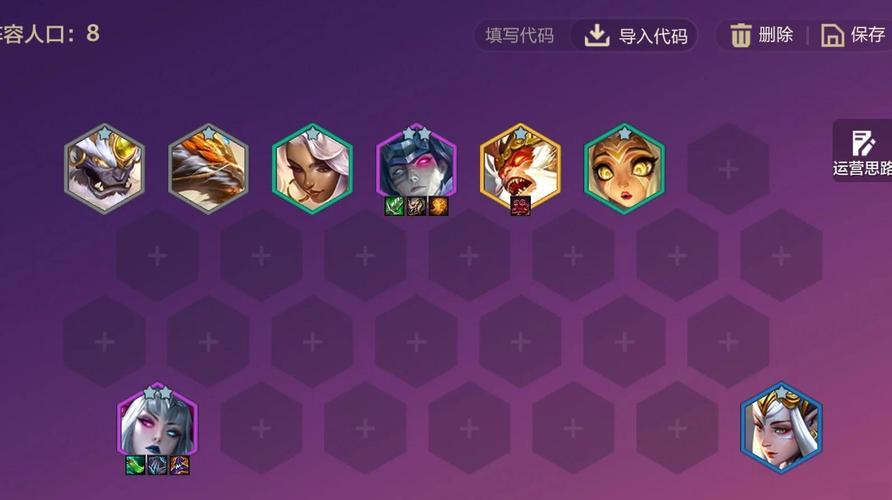 〖One〗、【阵容站位】前排希瓦娜先手控制,接杰斯进场。尽量多吃玉龙BUFF 对面团控比较多,分散站位,前后错开站位。希瓦娜单顶前排先手给控制。【运营节奏】开局首抢装—弓、法棒。 优先做出鬼索狂暴之刃,有利于中期打连胜。 前期用三星界(摆烂)斯卡纳、弗拉基米尔、奈德丽,不要升人口。
