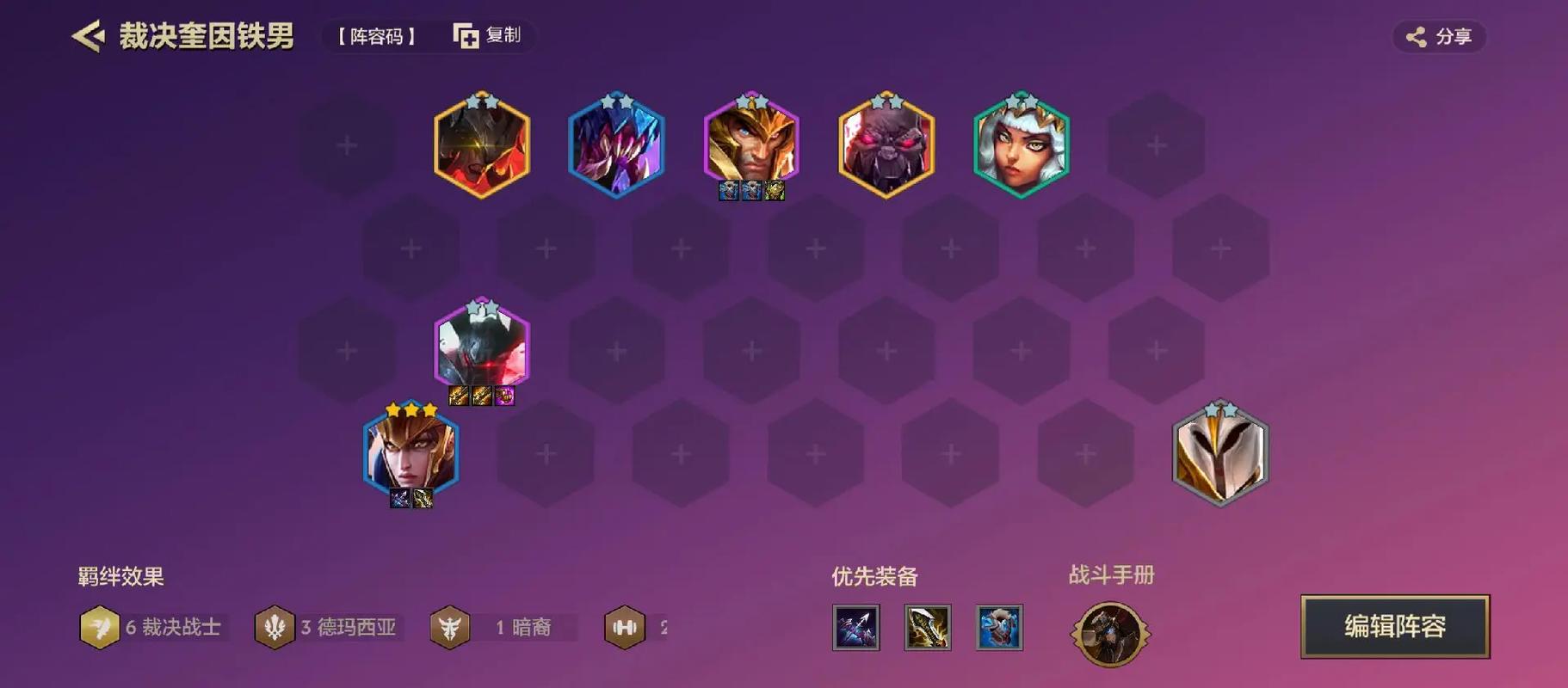 〖Six〗、《金铲铲之战》迅击卡牌阵容推荐:阵容组成 核心羁绊:4迅击战士。该羁绊能为阵容提供40%-100%的攻速加成(目标血量越低加成越高),并在击杀敌人后获得冲刺效果和护盾,极大增强了阵容的收割能力。