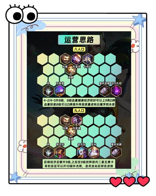 阵容组成 以小法师为核心,搭配其他约德尔人和法师英雄,如璐璐、波比、维迦(小法师)、吉格斯等,形成强大的羁绊效果。根据实际情况,可适当添加其他辅助或控制英雄,如塔姆、纳尔等,以增强阵容的灵活性和应对能力。阵容运营思路 前期以连败或连胜策略积累经济,尽快升级人口,寻找关键英雄和装备。