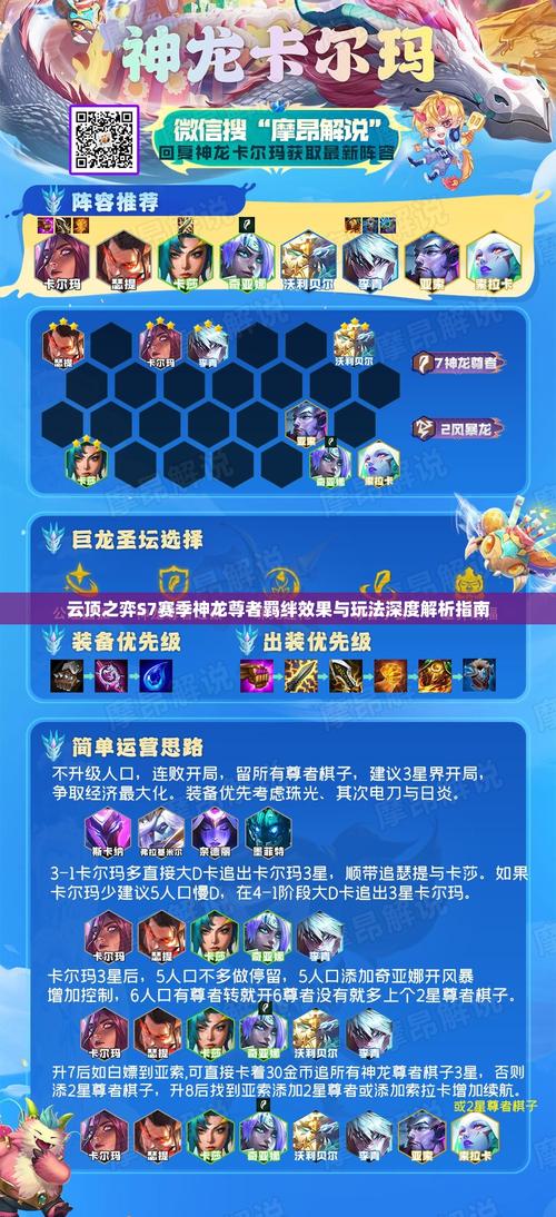 〖Five〗、云顶之弈S5龙族羁绊的过渡及运营技巧如下:过渡技巧 主C选取与装备:阵容的主C是大头(维克托),核心装备为羊刀、法爆和青龙刀。在前期,这些装备可以先做出来给打工仔使用,以提升战斗力。打工阵容:前期可以选取用3丧尸或3圣光卫士进行打工。