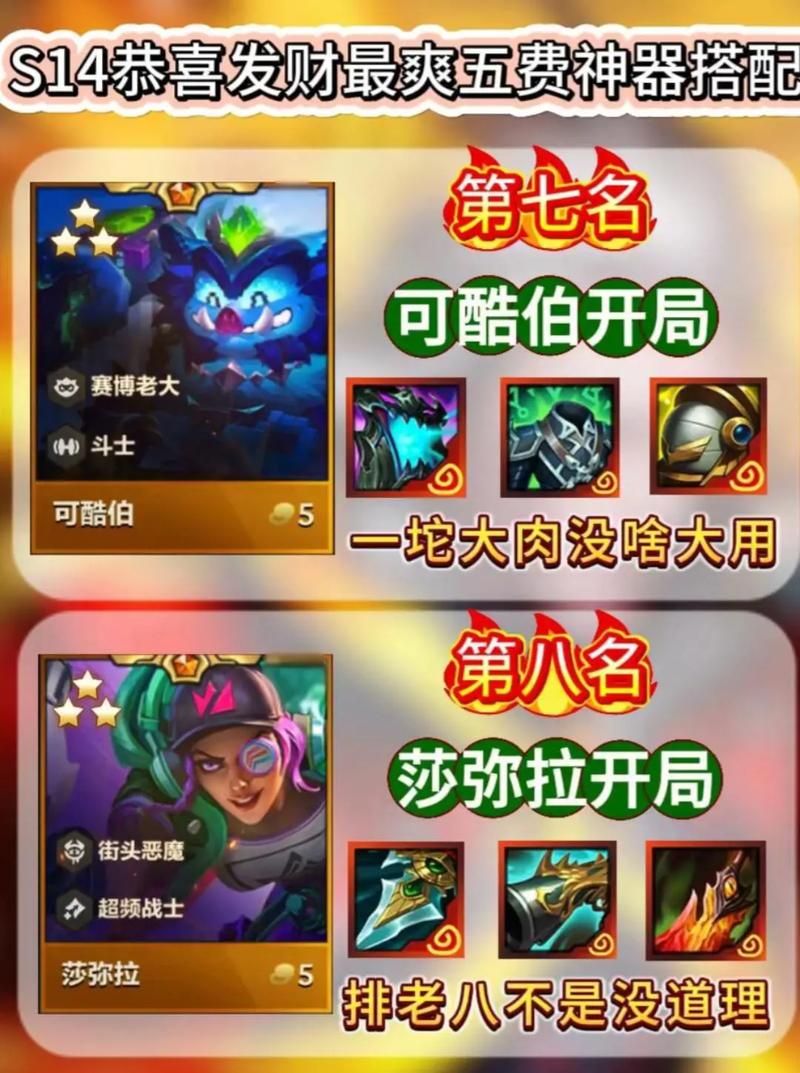 金铲铲之战S9恭喜发财瑞兹的搭配玩法、开局过渡及后期构筑如下:开局过渡 恕瑞玛、祖安瑞兹的搭配 前排格斗:恕瑞玛和祖安瑞兹在前排都需要堆格斗装备,以增强生存能力。核心装备:祖安瑞兹需要大天使之杖作为主要输出装备,通过存钱和大天使之杖的伤害来过渡。