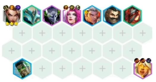〖Three〗、阵容组成 核心英雄:布隆、盖伦、蕾欧娜、可酷伯、诺手、女枪(核心输出)、阿萝拉、烬、莫甘娜。羁绊搭配 主要羁绊:4人造人(提供强大的团队增益效果)、3辛迪加(增加暴击伤害和暴击几率)、2斗士(增加生命值)、2重装(增加护甲),以及1圣灵(提供独特的技能效果)。