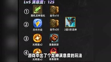 〖Five〗、金铲铲之战中的龙神强化效果主要包括以下几个方面:基础属性提升:攻击力增强:龙神强化后,其攻击力会得到显著提升,使得在战斗中对敌方单位造成的伤害增加。生命值增加:龙神的生命值也会随着强化而增加,提高其生存能力,使其能够在战场上持续更久。