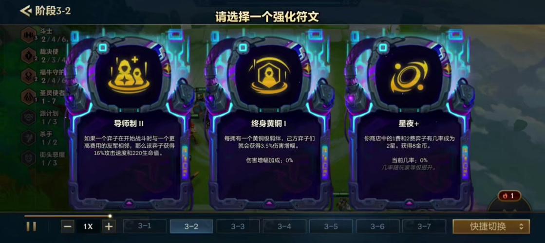 若前期血量健康(50+),可存钱速8找高费卡完善羁绊;若血量危险(30以下),需优先提升棋子星级或拿即时战力装备保血(如17173提到的延迟战力风险)。经济与D牌平衡 在4-1或4-2阶段拉7级,搜关键4费卡(如塔姆、阿卡丽)完成核心羁绊。保留1-2个散件装备,用于合成纹章或应对临时变阵。