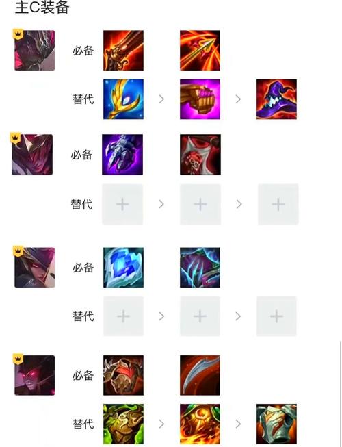 〖One〗、亚索:核心装备是泰坦,其余可考虑水银、夜之锋刃、无尽之刃、最后的轻语或巨杀。迭嘉:羊刀必备,其余可选电刀、巨杀、大天使之杖、帽子或法爆。人马:有鬼书和幻境转职时收益比较高,其余可考虑肉装。巨龙圣坛:优选:幻境龙之心/徽/冕、后期专家、蓝电池、公理圆弧。