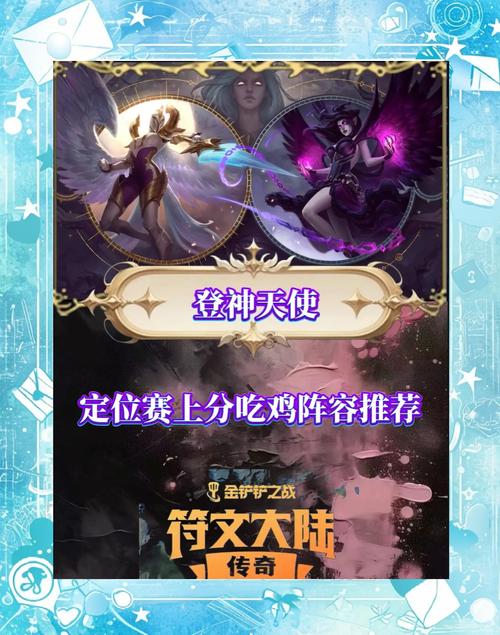 阵容搭配 登神天使阵容的核心英雄是四费卡天使,搭配一些辅助型英雄如蕾欧娜、布隆等提供控制和前排保护。到了后期,可以加入阿狸、厄运小姐等五费卡增强阵容强度。装备选取 天使:青龙刀、羊刀和水银是天使的理想装备组合,可以最大化她的输出和生存能力。