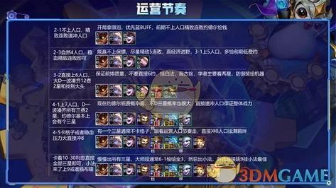 前期最佳组合为龙女+豹子+狼人+杰斯,或斗士狂野过渡。中期:2-5上五人口,基于分裂龙女或日炎连胜,多挂3费拼多多组合。连胜则3-1跳6人口,没连胜则3-2上六人口。后期:连胜则3-5跳7人口,没连胜则4-1上七人口并小D提升阵容质量。