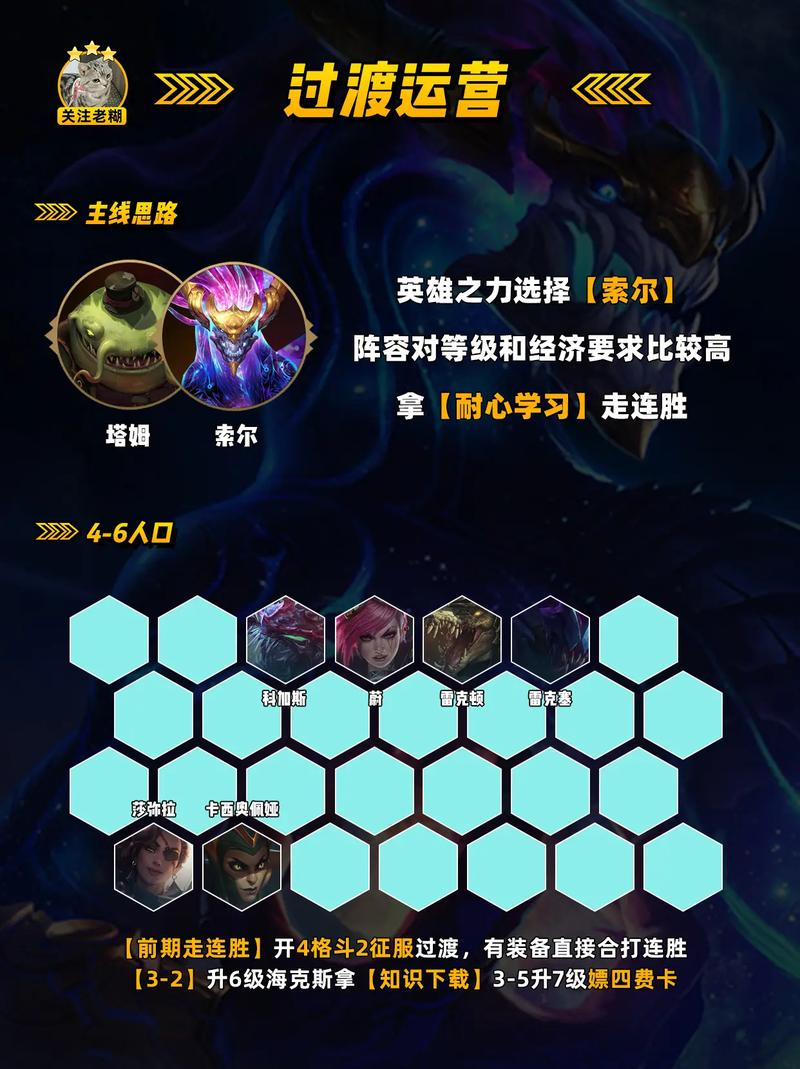 〖Four〗、金铲铲之战s5毒斗罗九五阵容搭配攻略如下:阵容搭配 所需卡牌:俄洛依、猪妹、雷克塞、塔姆、扎克、蔚、烈娜塔、希尔科、维克托。阵容思路:此阵容以斗士和学者为核心,搭配变异战士增加输出多样性。斗士提供坦度,学者增加回蓝速度,变异战士则根据当局变异属性提供额外加成。